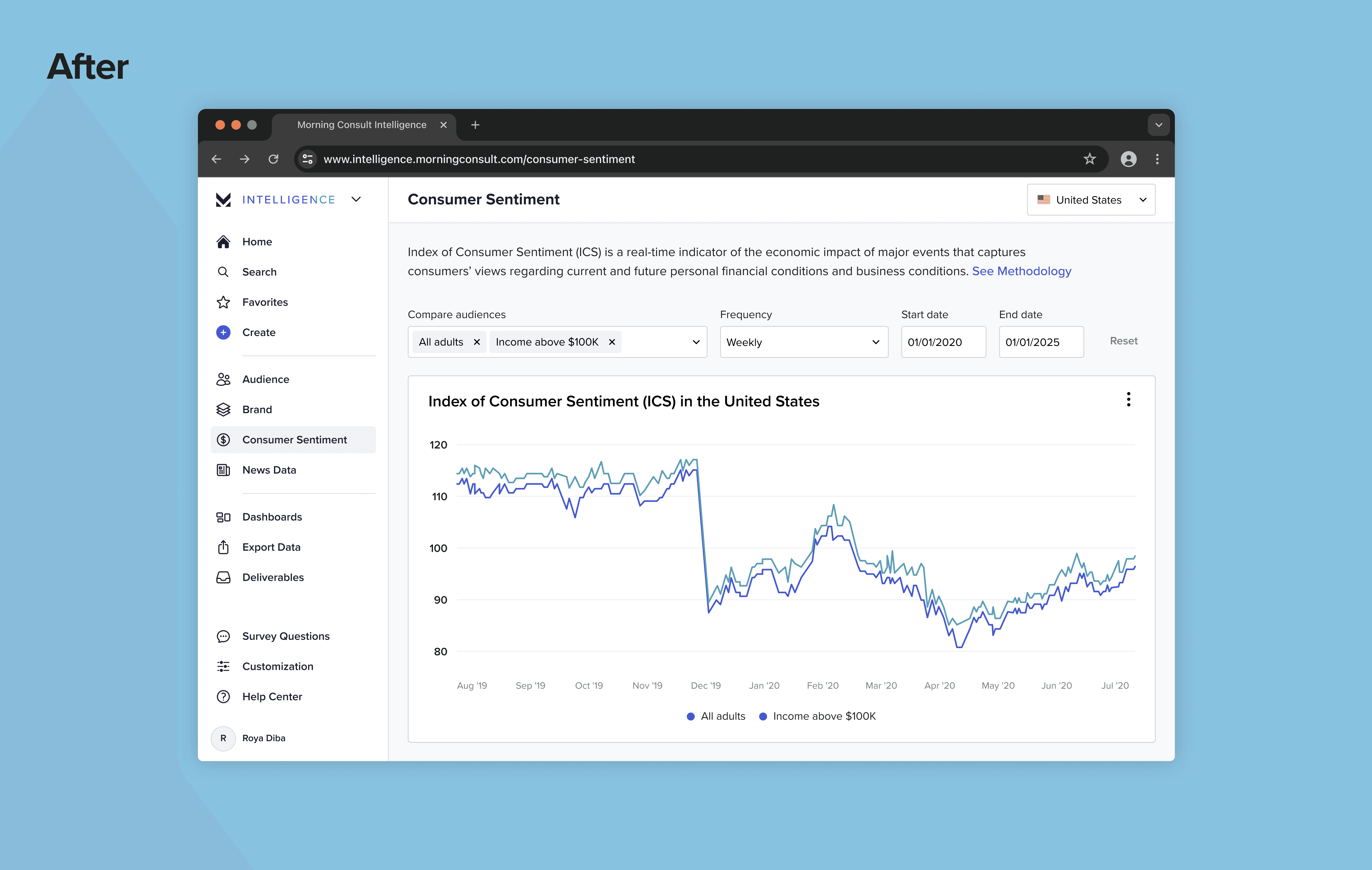 Business Context: Morning Consult surveys hundreds of thousands of people daily across over 40 markets on topics ranging from brand perception to purchasing behavior. Their B2B SaaS platform provides enterprise insights and marketing teams access to this consumer data to help inform strategic business decisions.